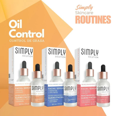 Simply Solution · Rutina Control Grasa · Glicólico, Hialurónico y Niacinamida